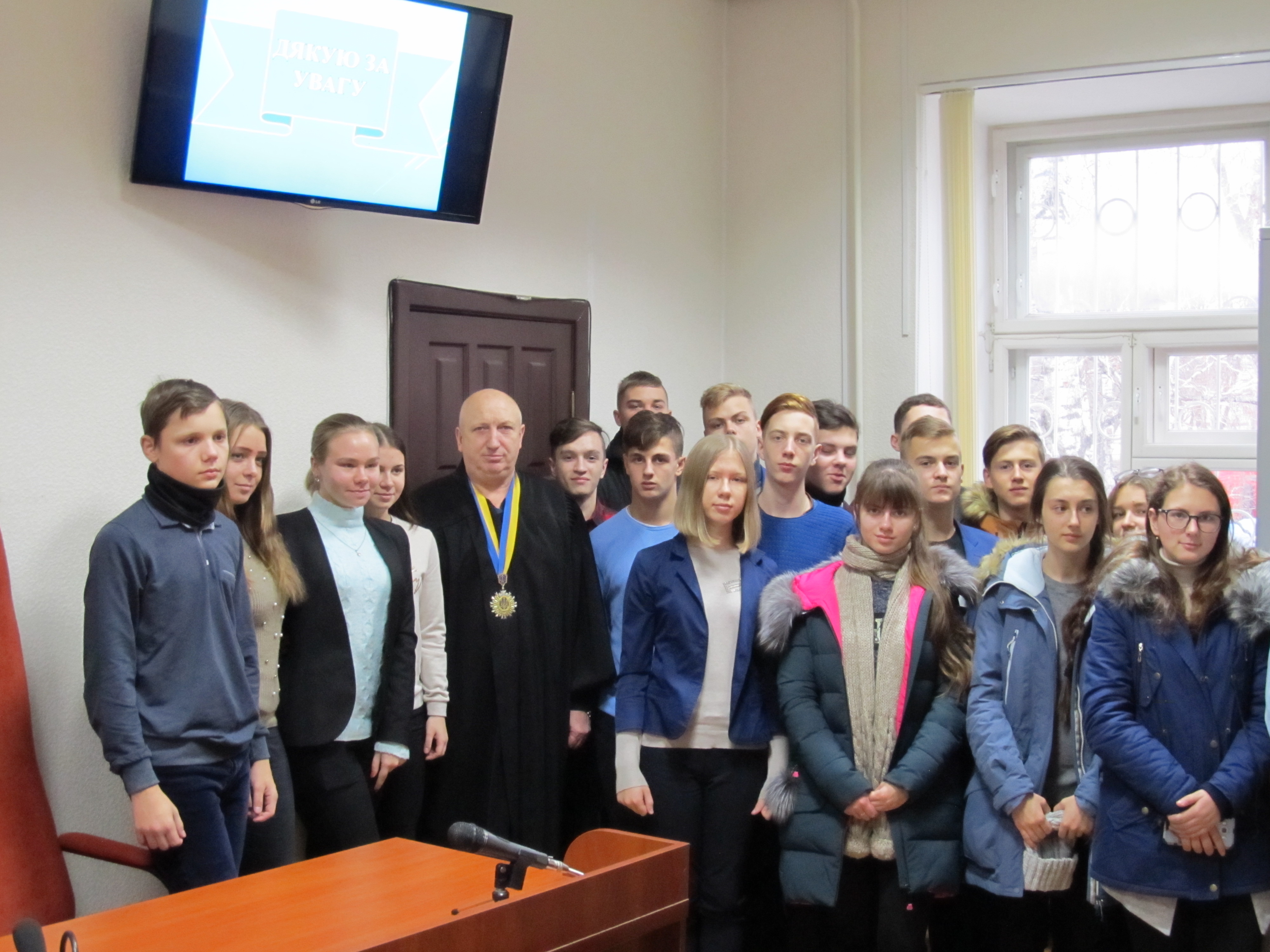 Голова суду Гуменний Зіновій Іванович розповів про діяльність Чугуївського міського суду Харківської області, специфіку роботи, категорії справ, які розглядаються судом, відповів на запитання школярів.
