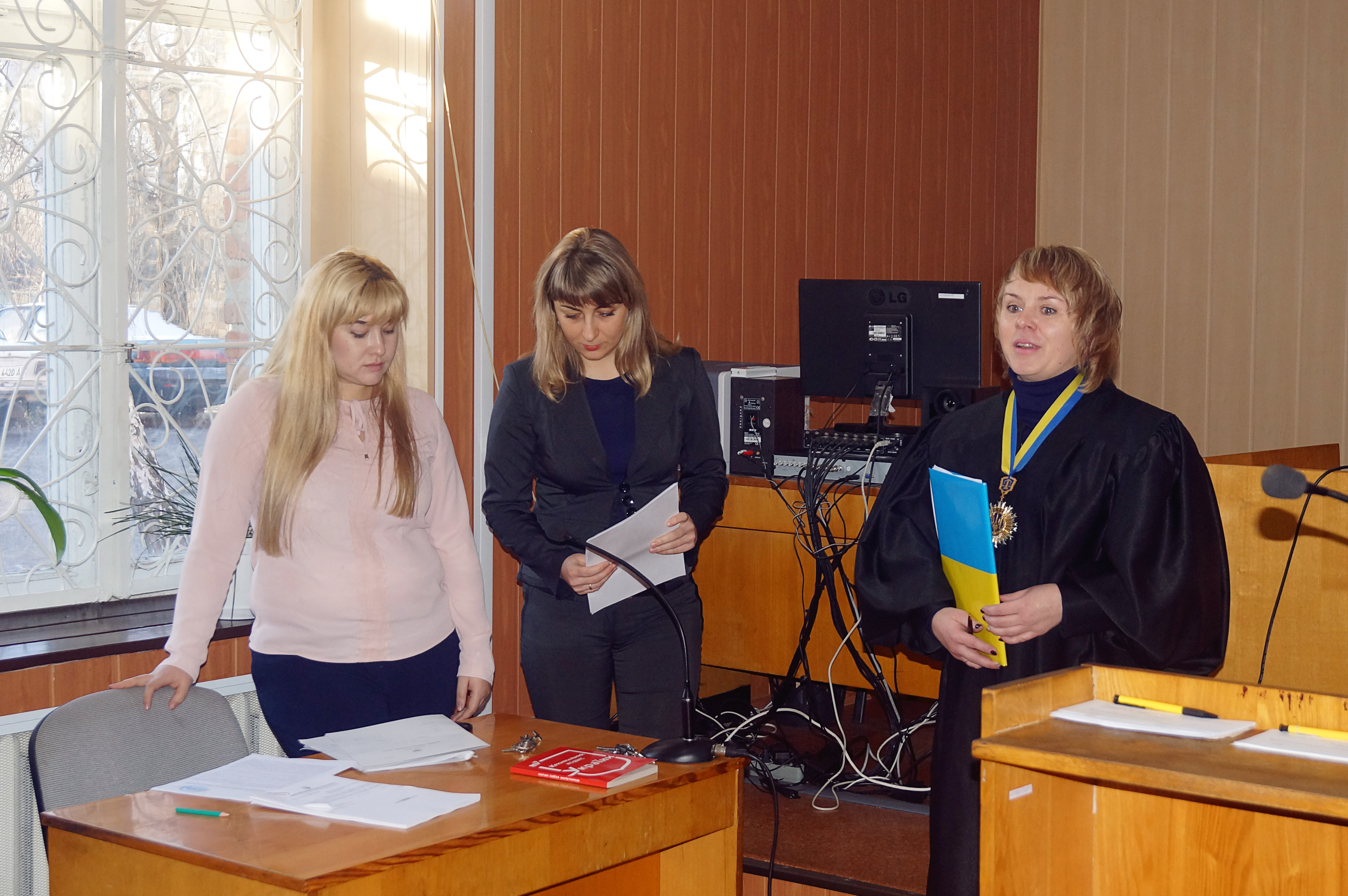 Старший секретар суду Ірина Олександрівна Соколова ознайомила учнів з роботою канцелярії суду, а саме порядком реєстрації документів, їх рухом та порядком роботи з ними в програмі КП «Д-3», порядком реєстрації справ різних категорій, порядком ведення обліково-статистичних карток, порядком звернення до виконання судових рішень. Про те, що в суді функціонує система автоматизованого документообігу КП «Д-3». Справи між суддями розподіляються автоматично – за допомогою спеціальної комп’ютерної програми, яка присвоює номер кожній судовій справі й сама визначає суддю, до якого вона потрапить: з дотриманням принципів черговості, вірогідності та рівності. Працівники суду лише вносять у базу системи дані та відомості, що стосуються конкретної судової справи.