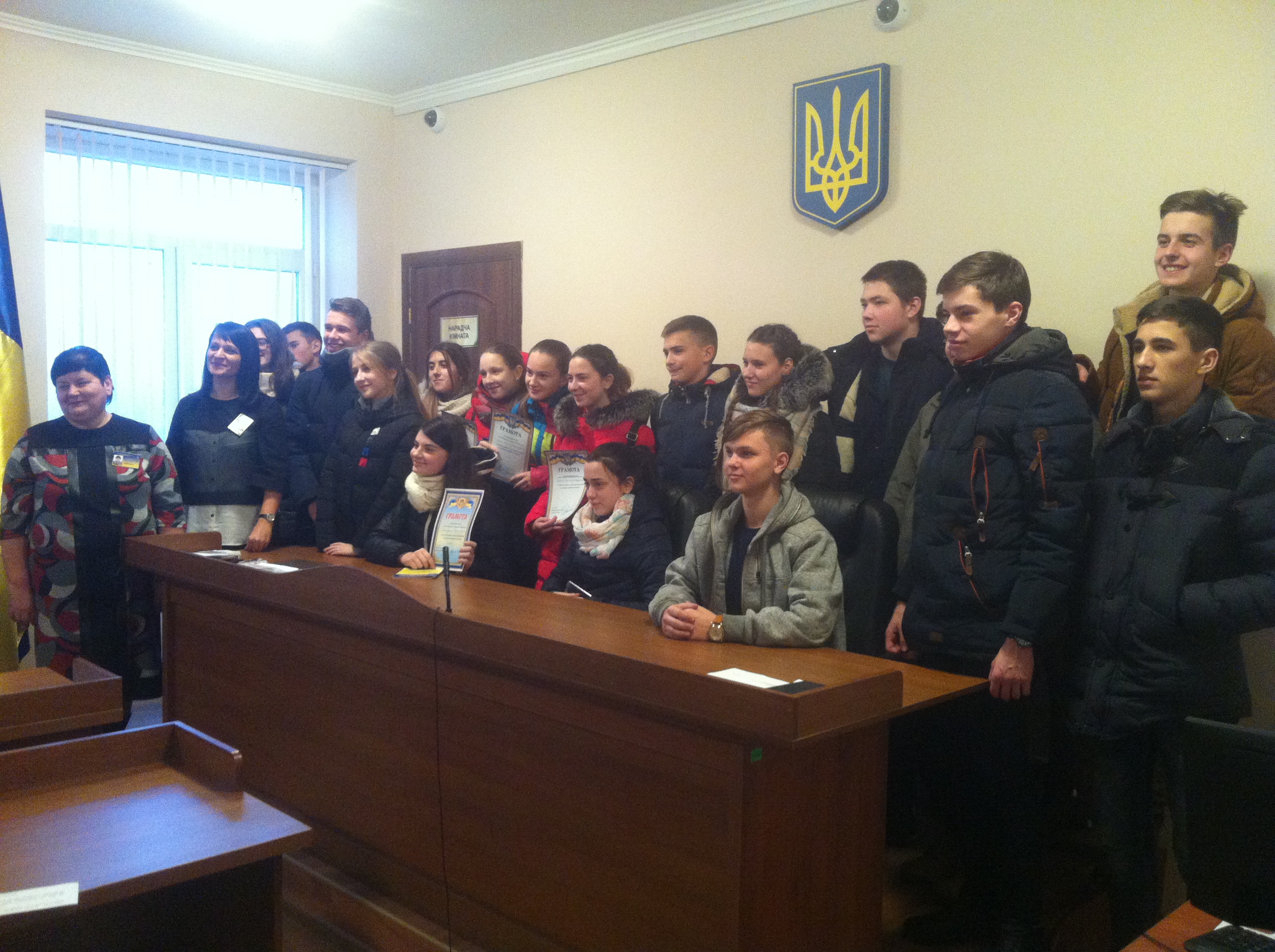 Учнів гімназії та їх вчителя Запотічну Н.Ф зустріли суддя спікер Карпин І.М., керівник апарату суду Грицан Д.Б та консультант суду Папірник Г.Я. В ході ознайомчої екскурсії приміщенням учні дізналися про специфіку роботи суду, порядок прийому та реєстрації вхідної кореспонденції .