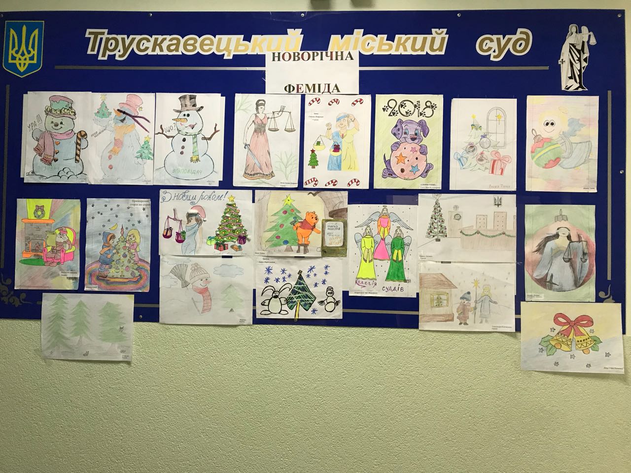 У Трускавецькому міському суді Львівської області продовжується виставка дитячих малюнків на тему: «Новорічна Феміда», що проводиться за ініціативою судді-спікера Тетяни Василюк, а також активного сприяння голови суду Грицьківа Віталія Теофільовича, керівника апарату Віталія Корчинського, заступника керівника апарату Ірини Лесович, старшого секретаря суду Ольги Шумеляк та помічника судді Ірини Луцької .