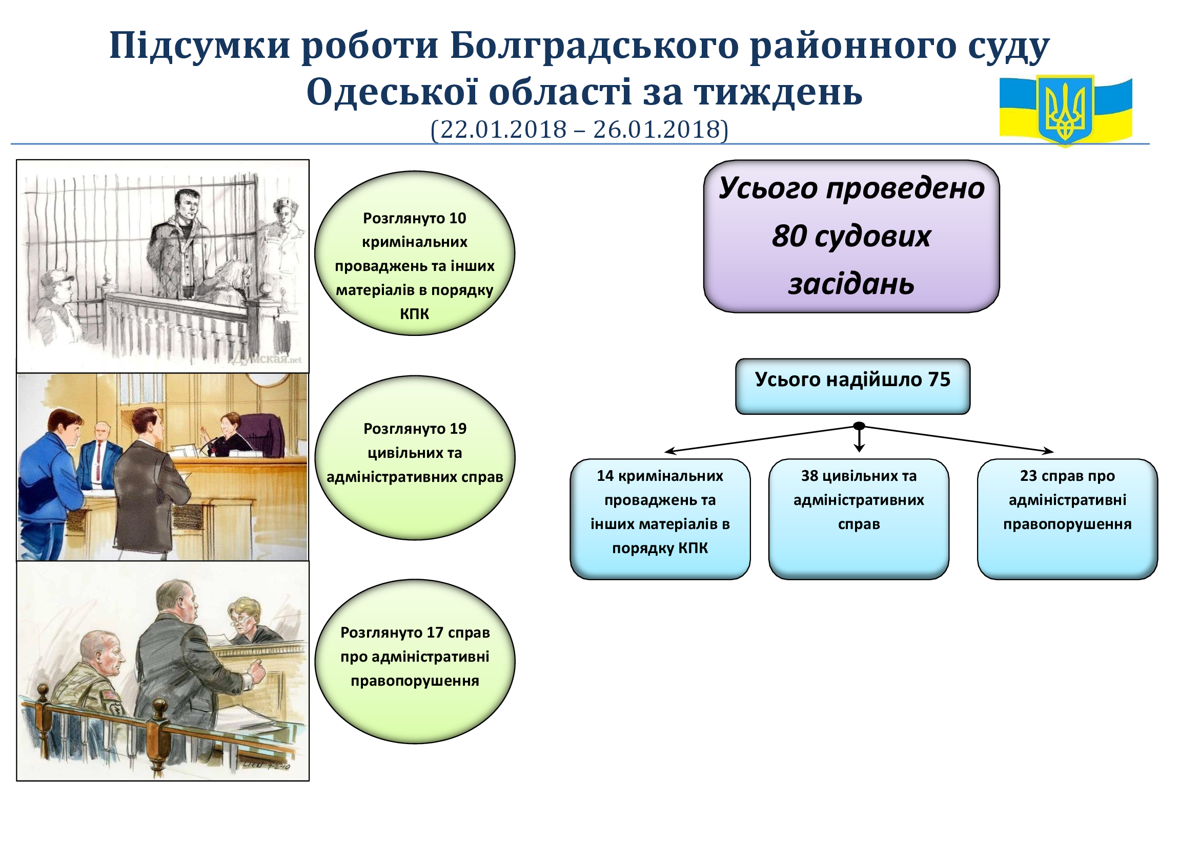 Підсумки роботи Болградського районного суду Одеської області за тиждень