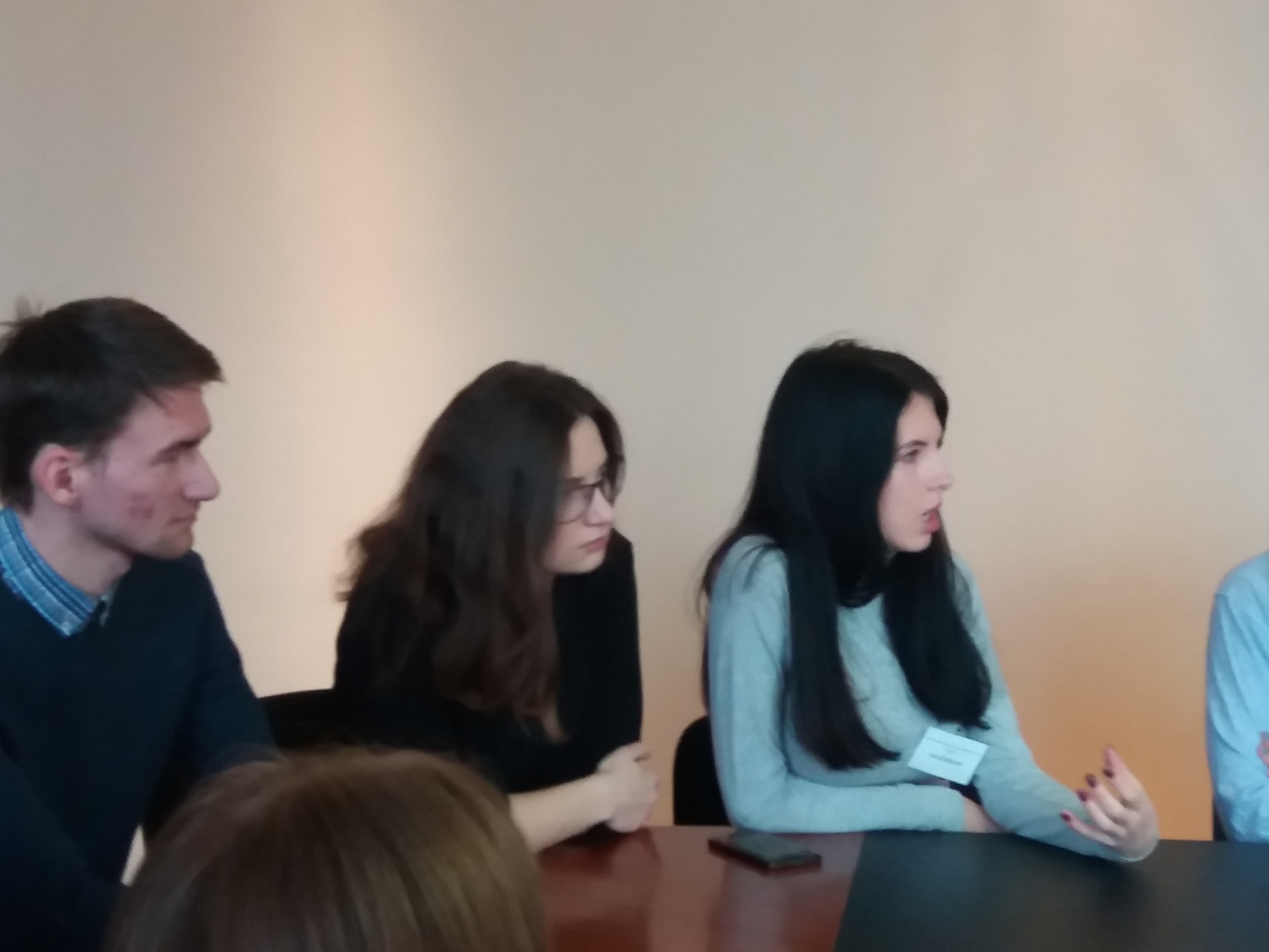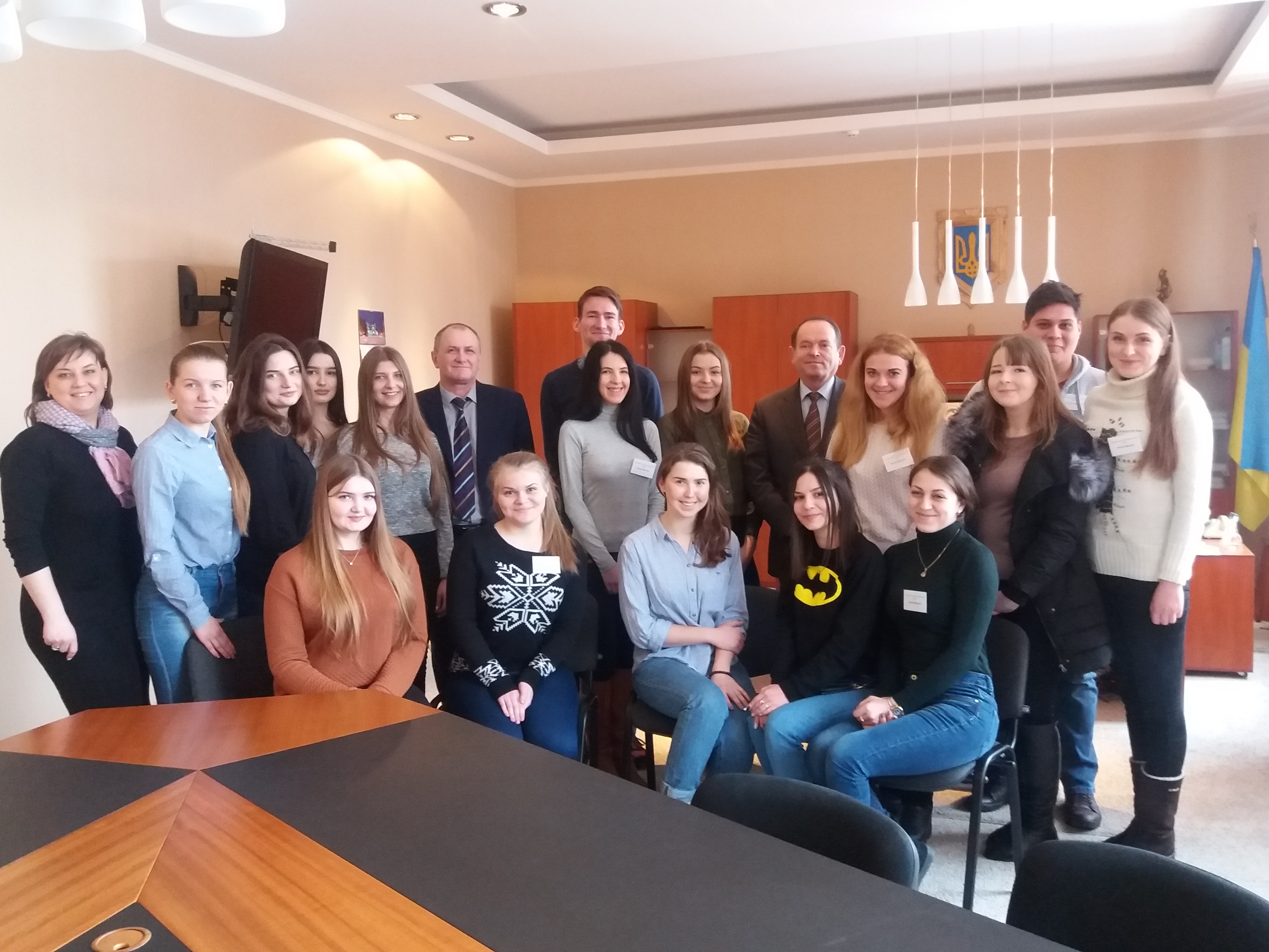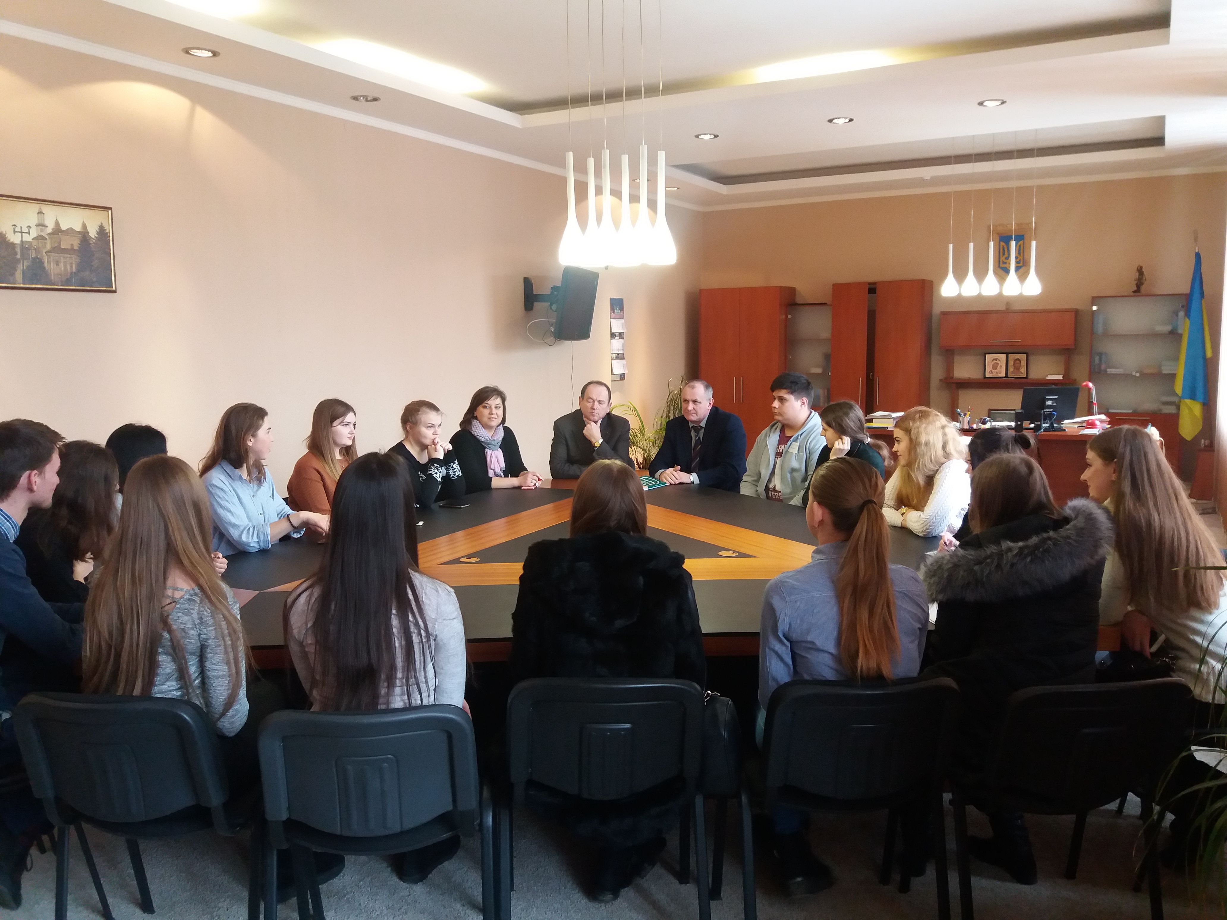 21 лютого голова суду Богдан Гриновецький, заступник голови суду Віталій Девляшевський та керівник апарату суду Оксана Розвадовська спілкувались з практикантами. Бесіда була дуже цікава та тривала більше години. Студенти активно ділились враженнями від побаченого та задавали запитання. Їх цікавили питання про роботу суду, перебіг судової реформи, ставлення суспільства до суддівської роботи та емоції судді підчас розгляду справи та прийняття рішення.