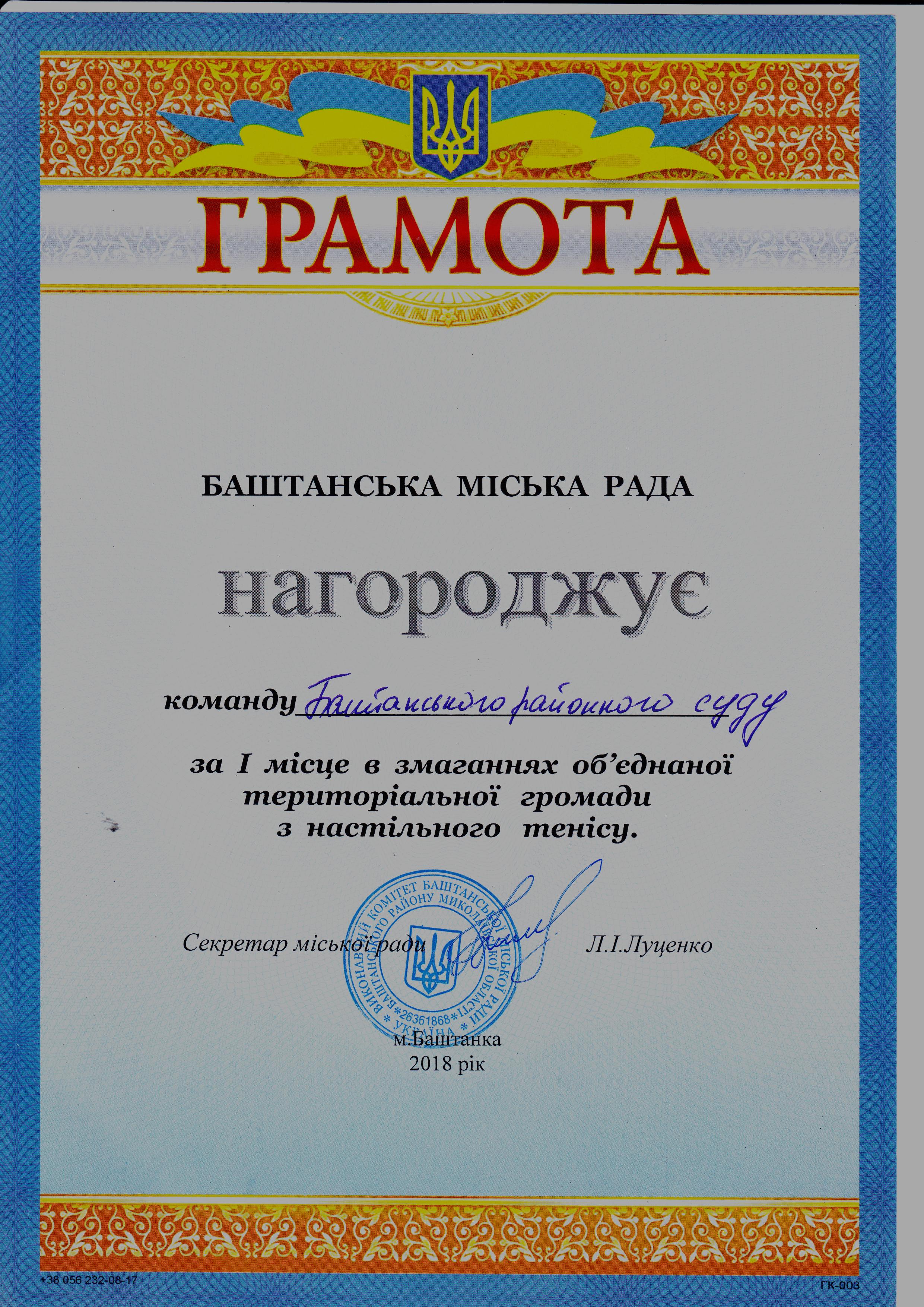 Команда Баштанського районного суду виступала у складі: Микола Лаба, Руслан Низик, Руслана Зама.