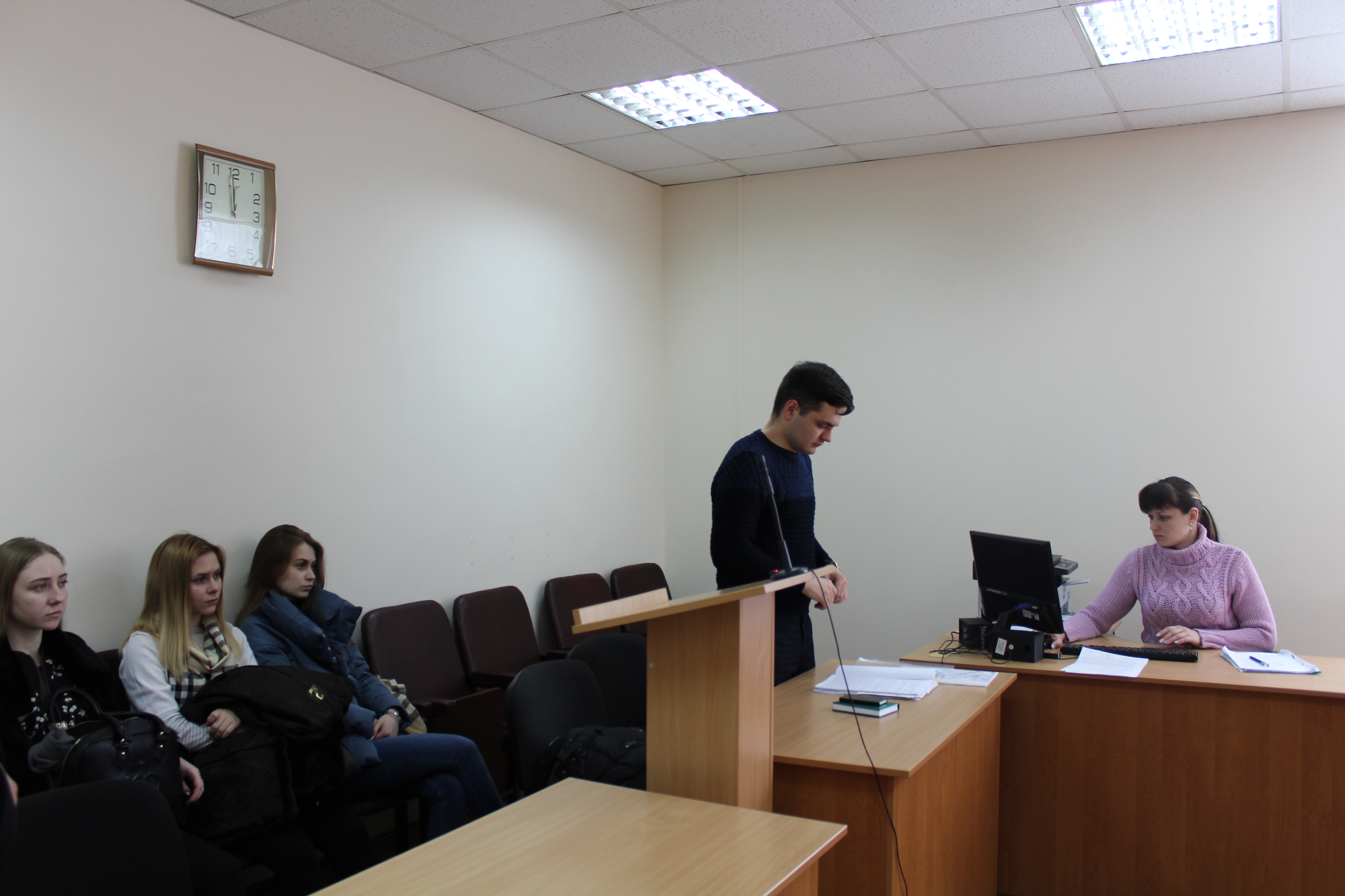 Після знайомства із роботою та спеціалізацією суду студенти мали змогу стати глядачами судового процесу. Власновіч побачити: як проходить судове засідання, як його веде та приймає рішення суддя, яким чином свою позицію представляють позивачі та відповідачі.