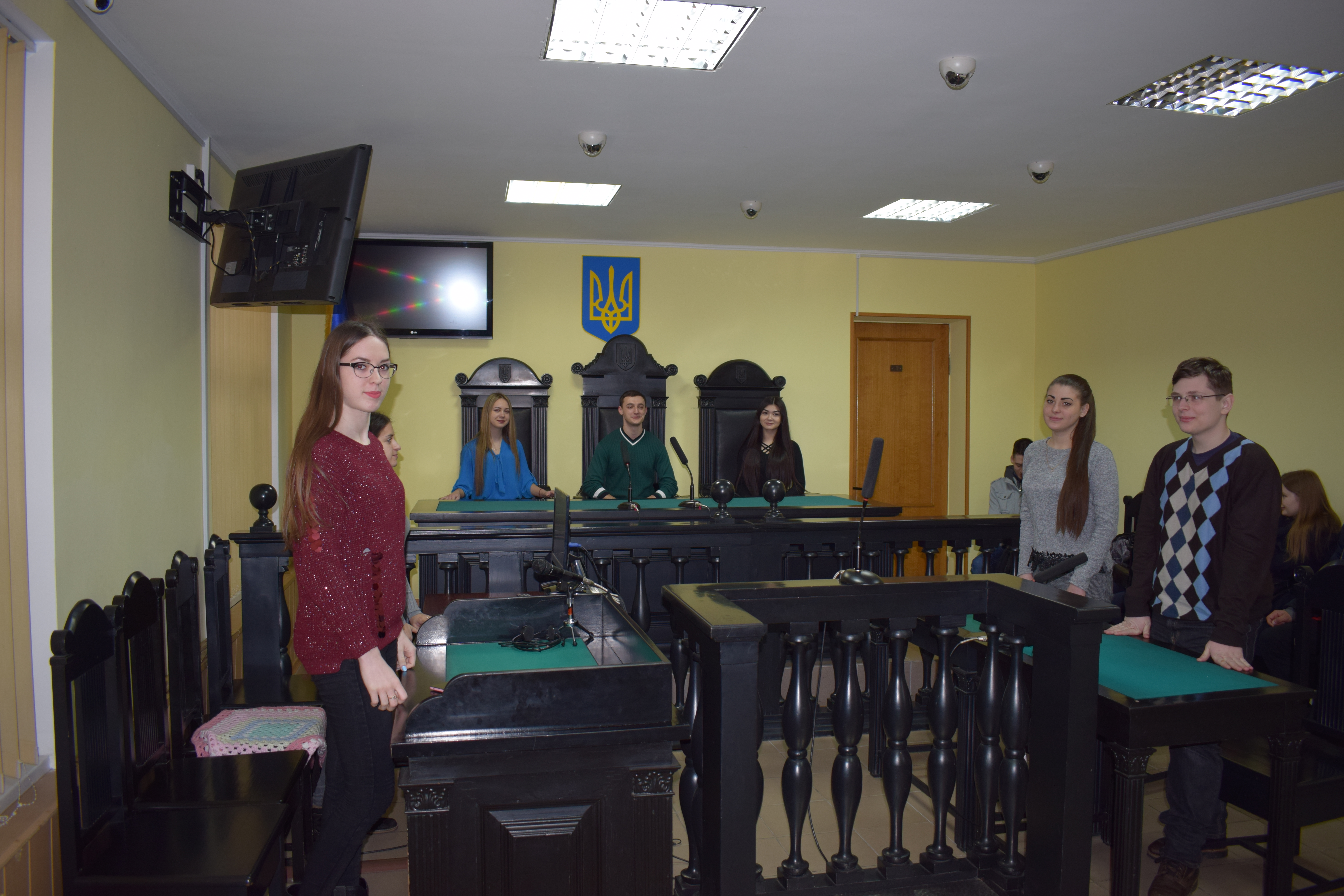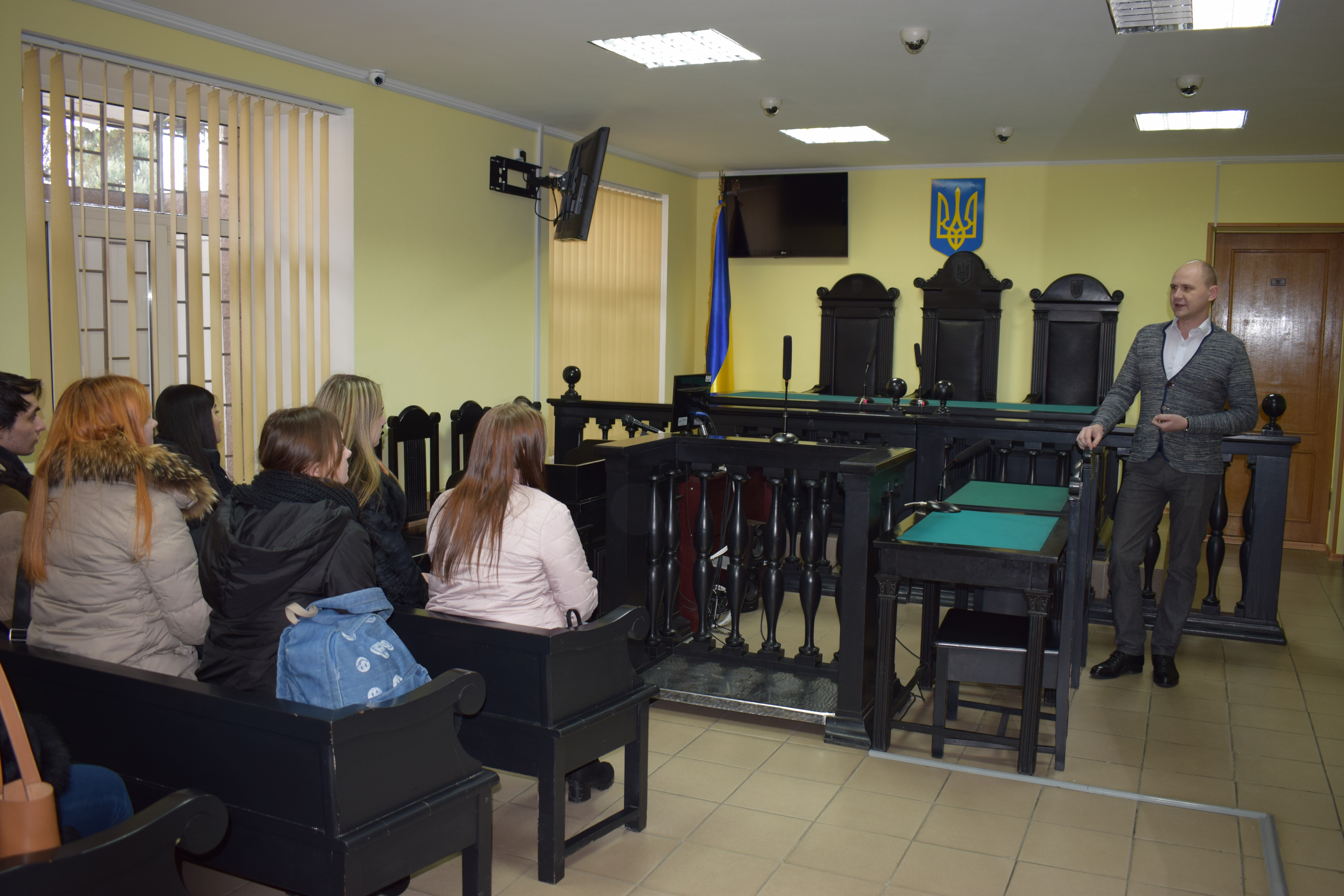 Зустріла студентів заступник керівника апарату суду Оксана Борисова, яка привітала майбутніх правників та розповіла про Інформаційний центр суду, в якому можна не тільки дізнатися про стан розгляду справ, дату та час призначеного судового засідання, результати розгляду апеляційної скарги, а й отримати копії судових рішень та іншу інформацію. Крім того, кожен відвідувач суду може скористатися послугою безкоштовної підзарядки мобільних телефонів та портативних пристроїв, а також підключитися до мережі інтернет за допомогою вільного WI-FI.