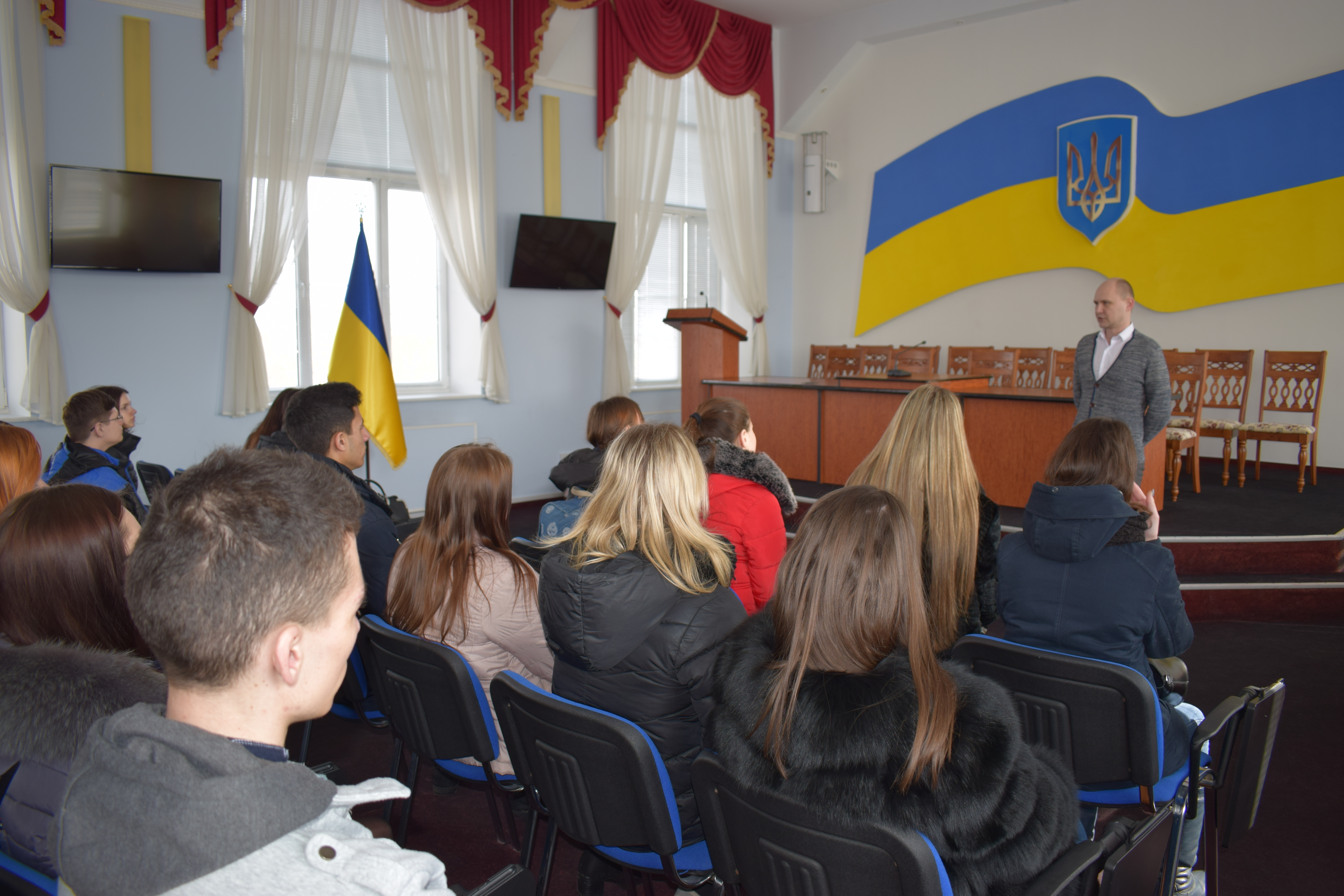 Після екскурсії будівлею суду керівник апарату запросив гостей до актової зали, де розповів про місце суду апеляційної інстанції в судовій системі та його функції, особливості суддівського самоврядування та інше, а також відповів на питання зацікавлених студентів щодо спеціалізації суддів в апеляційному суді, категорій справ, які переважають в суді, кількості справ, які розглядаються колегіями суддів щодня, тощо.