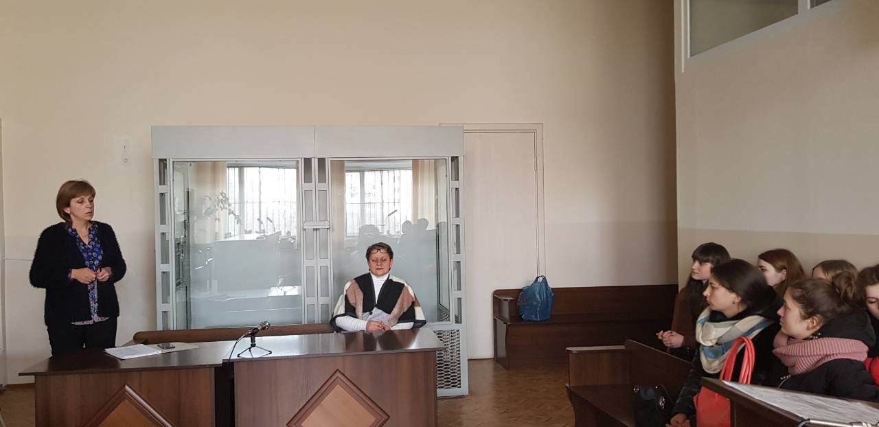 Зустрічала студентів керівник апарату Мосійчук Ніна Василівна, яка розповіла про роль загального суду у судовій системі, про новели судової реформи та ознайомила відвідувачів з правилами поведінки у суді.