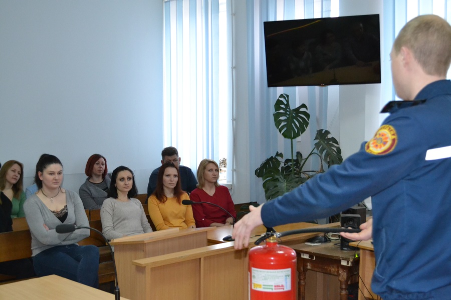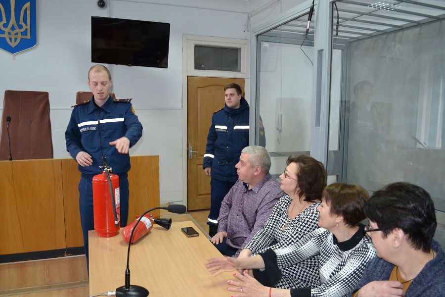 Працівники суду були ознайомлені з можливими причинами виникнення пожеж, заходами щодо їх запобіганню та ліквідації, порядком дій при виявленні пожежі, а також вивчили правила поводження із первинними засобами пожежогасіння (вогнегасниками), їх види.