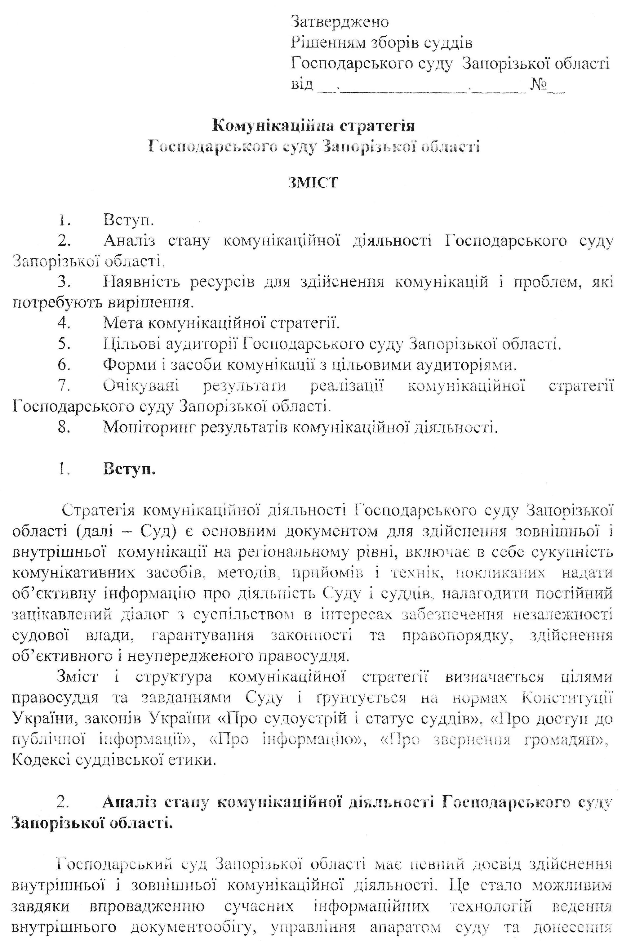 Господарський суд Запорізької області оприлюднив комунікаційну стратегію суду