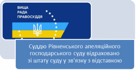 Рівненський апеляційний господарський суд повідомляє, що на підставі рішення Вищої ради правосуддя «Про звільнення Демянчука Ю.Г. з посади судді Рівненського апеляційного господарського суду у відставку» від 27 березня 2018 р. №899/0/15-18 (http://www.vru.gov.ua/act/13749)
