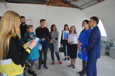 Прес-конференція розпочалась на шостому мансардному поверсі,що був відновлений і де планується обладнання конференц-залу. Заступник начальника відділу забезпечення діяльності голови суду та його заступника Олеся Борейко зробила короткий екскурс в історію будівлі, зокрема зауважила, що п риміщення на момент передачі перебувало у вкрай занедбаному стані. Більшість приміщення, як і фасад споруди, були у аварійному стані, тому у 2012 році було прийнято рішення про проведення протиаварійних робіт на фасаді, у ході яких були замінені конструкція балконів, укріплені віконні рами та відновлено ліпнину.