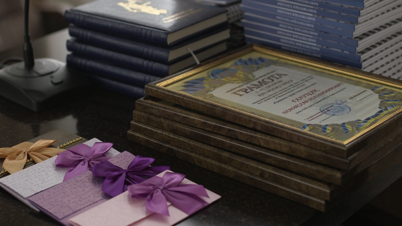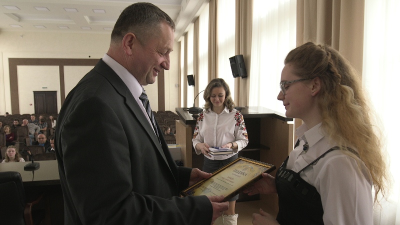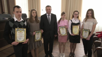 Отож, грамоту голови Апеляційного суду Хмельницької області, подарунки і віншування з І місцем у конкурсі творчих робіт (есе) «Професія судді очима школярів» приймав учень 9-В класу Гімназії №2 Владислав Галущак, котрому журі віддали 73 бали.