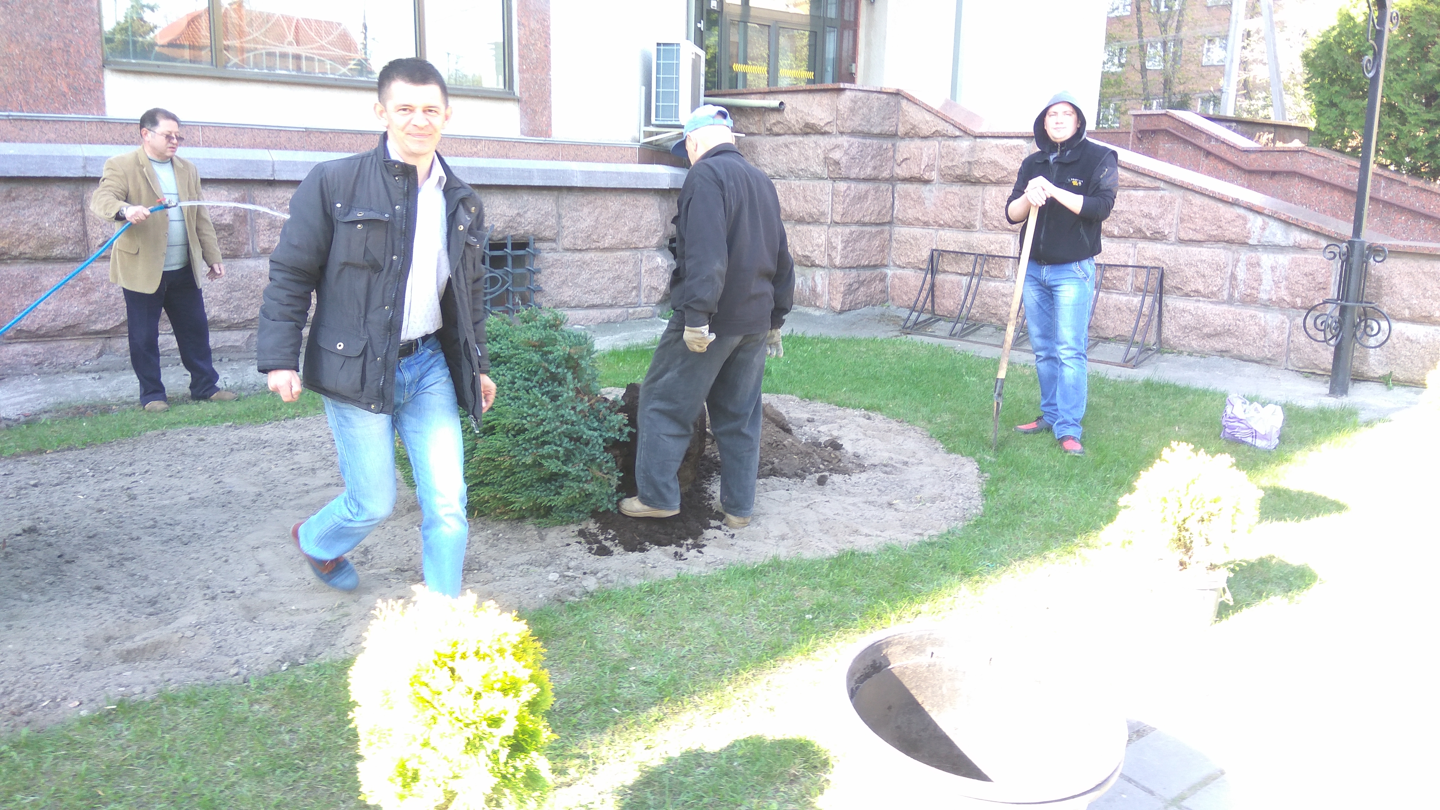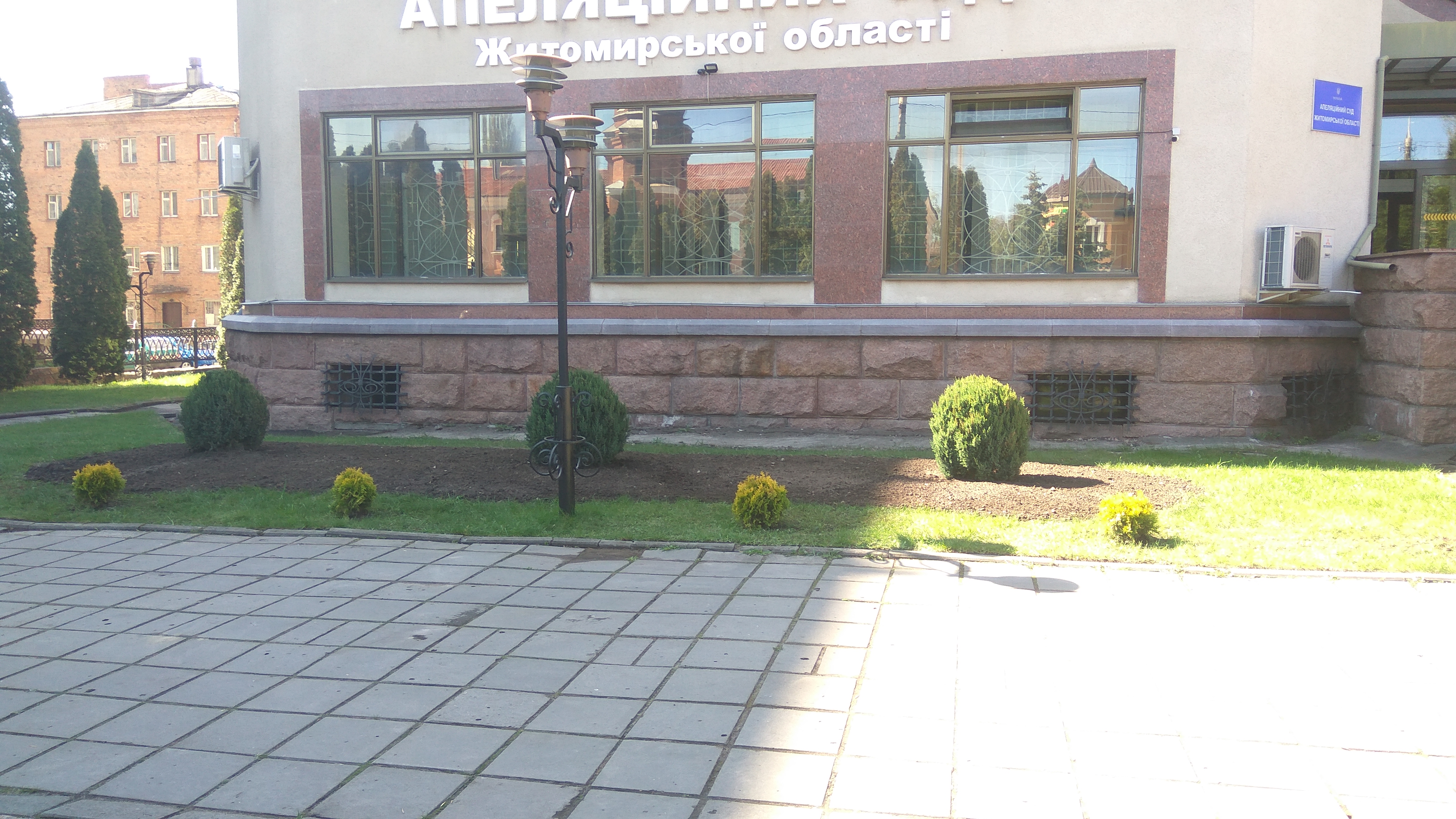 20 квітня 2018 року працівники апарату суду займалися благоустроєм прилеглої до будівлі суду території: саджали кущі та квіти.