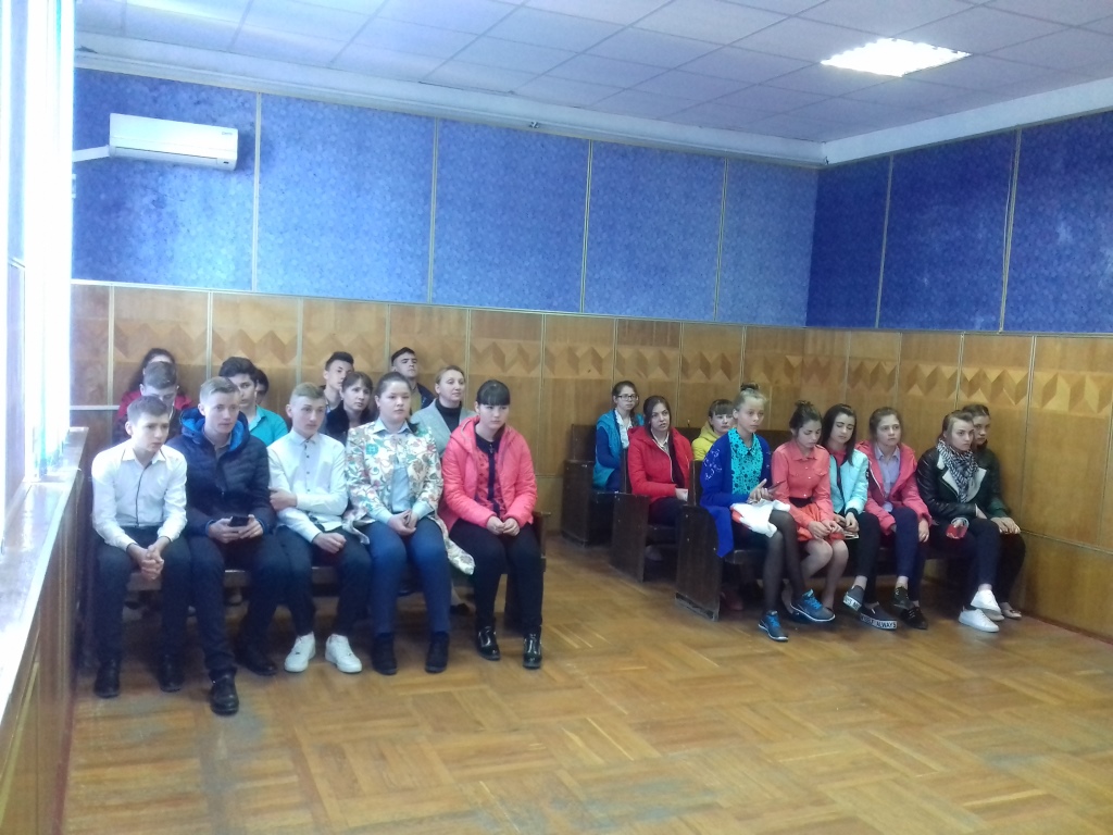 Після цього, школярам випала можливість поспілкуватися із головою суду Тимчуком Русланом Миколайовичем, який розповів учням основні принципи судочинства, спрямовані на захист прав громадян та інтересів держави та запросив присутніх взяти участь у правовому тренінгу на тему «Механізми захисту прав дитини».