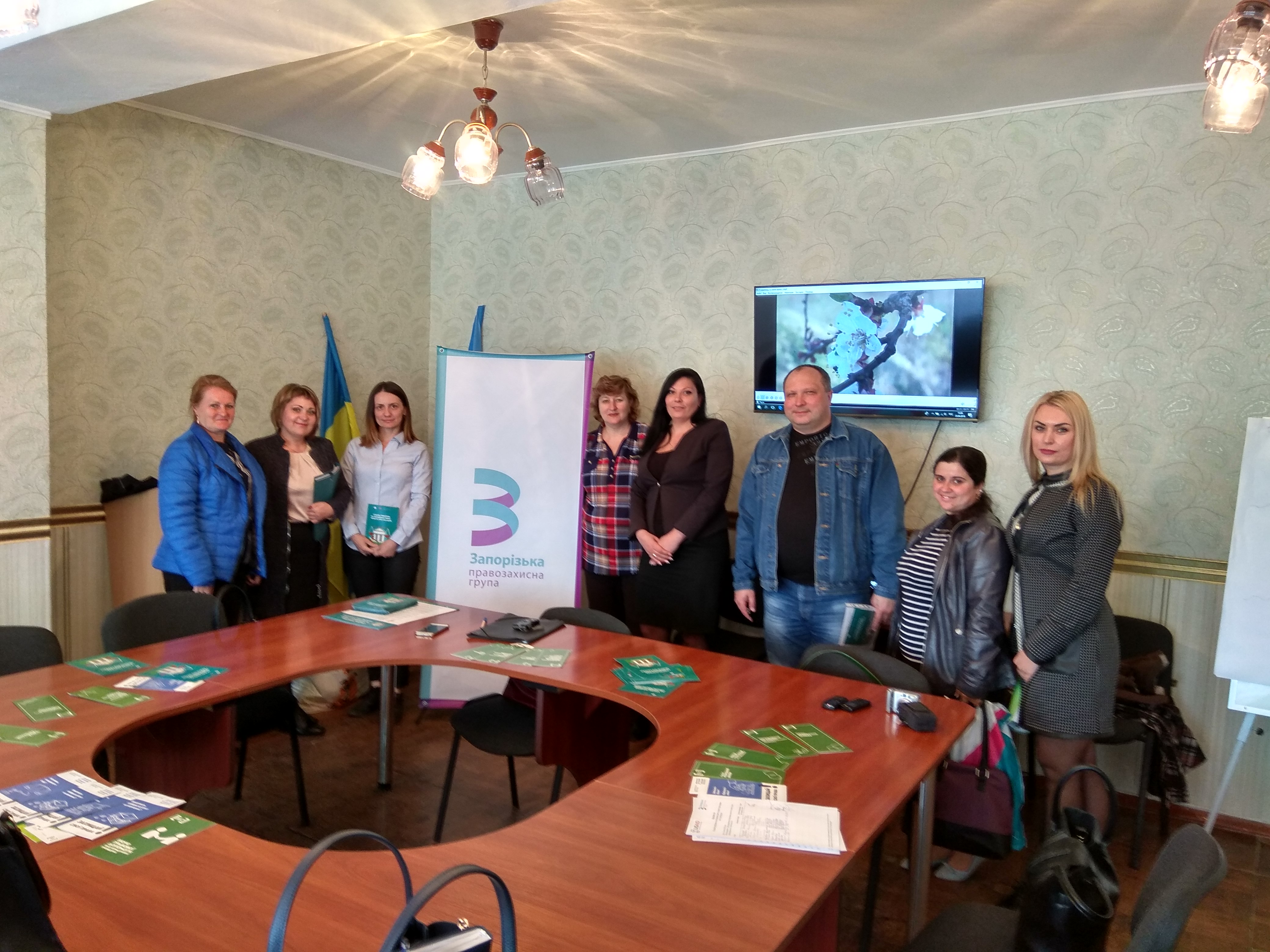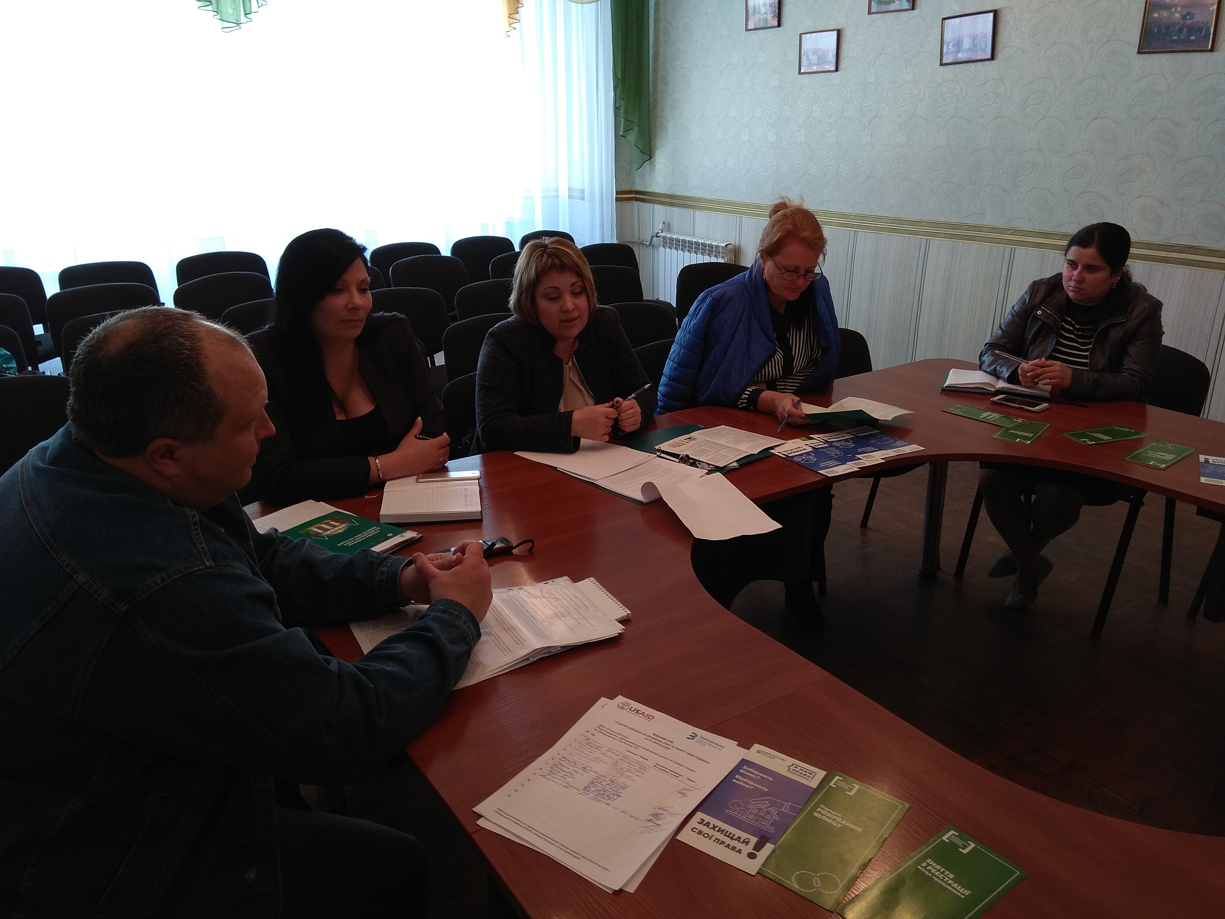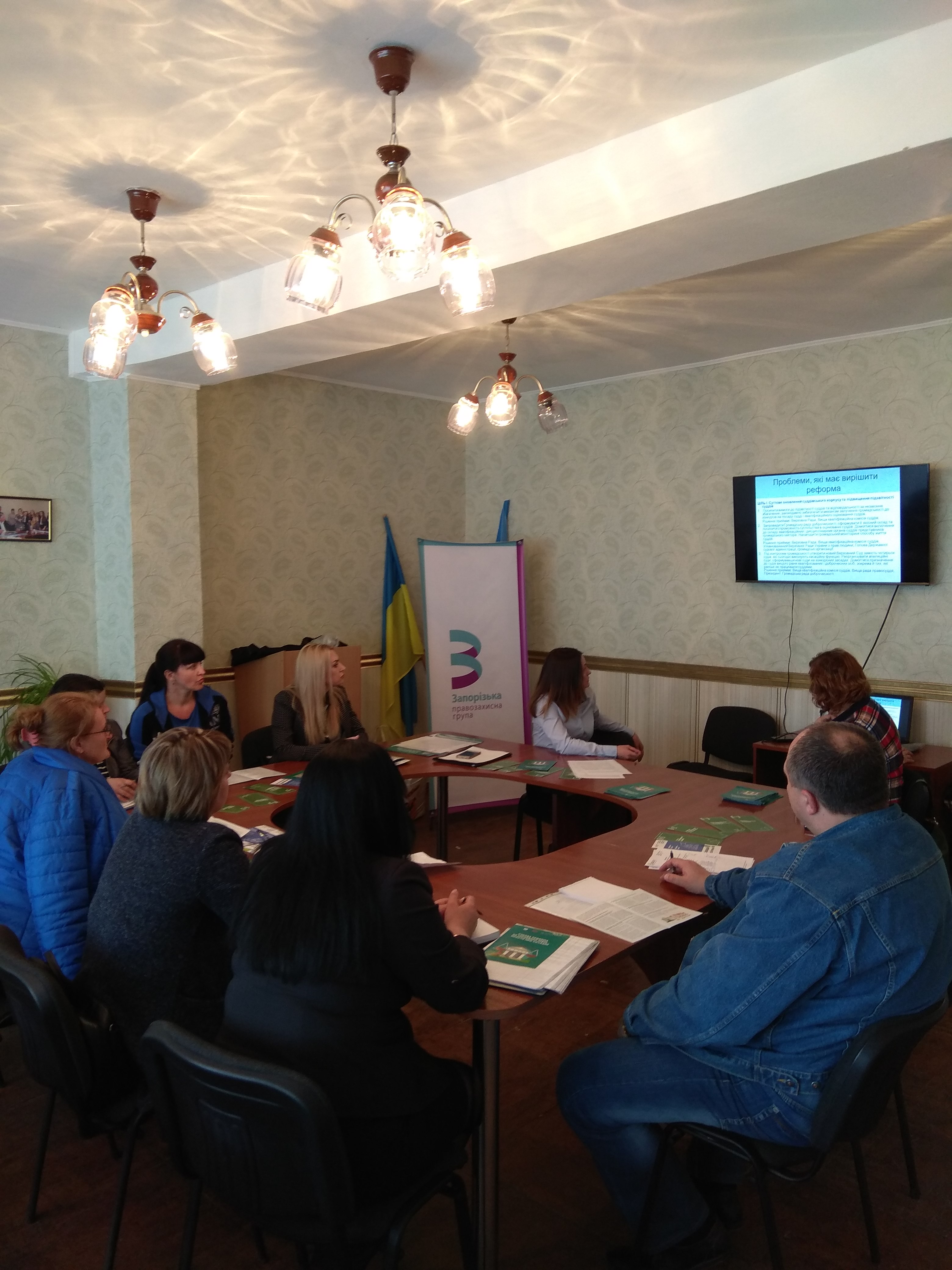 Організатори заходу – Юлія Берлінер та Наталія Богомолова на початку круглого столу познайомилися з учасниками заходу - від Василівського відділу Головного управління Національної поліції України - Волик Я., від вторинної правової допомоги – Лопухов В. та його заступник, від Василівського районного суду - керівник апарату Козарик Н., від Василівського відділу РАЦС - Жуковець В., від Василівського ВДВС – Маркіна І..