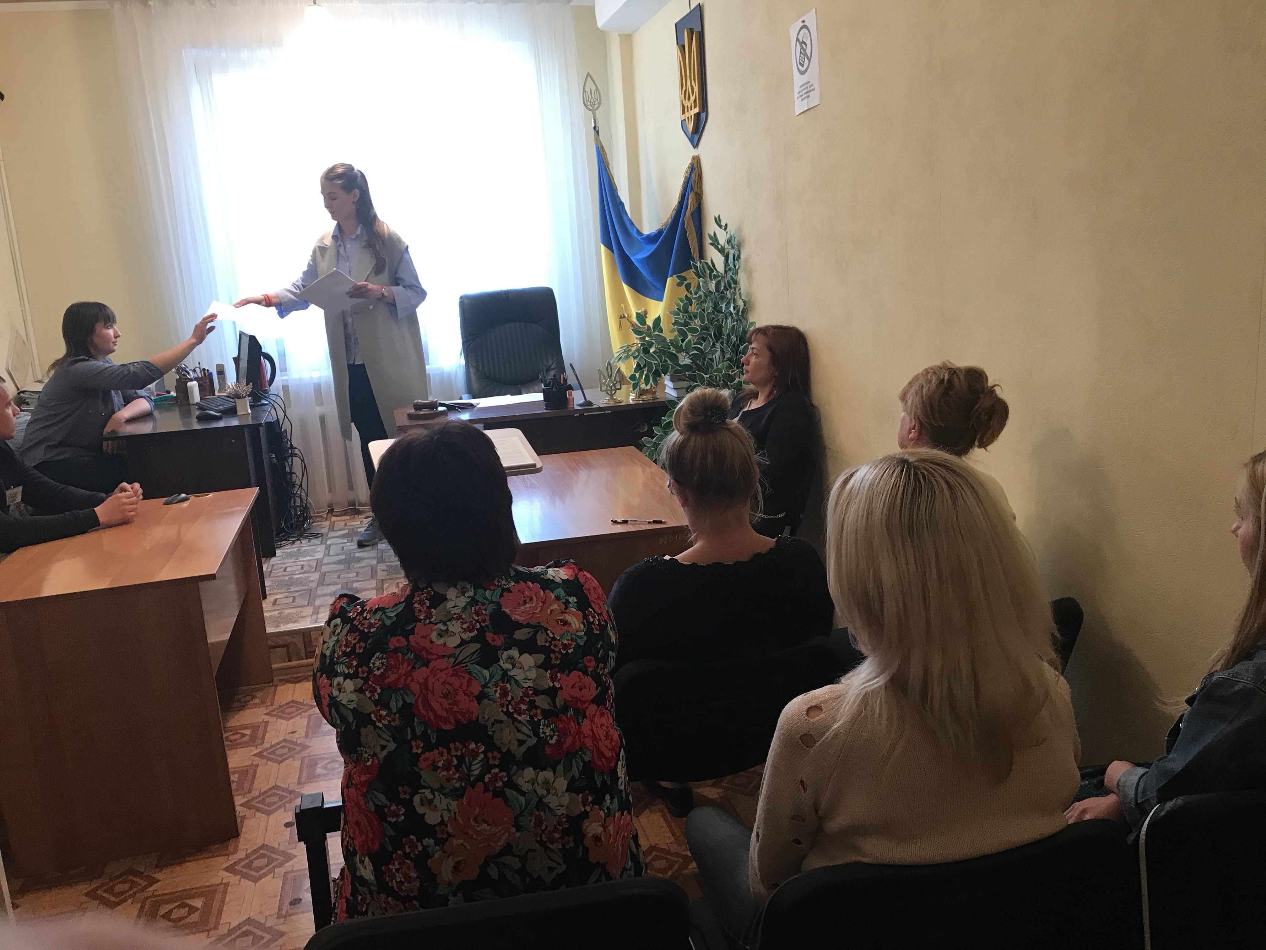 Заступником керівника апарату Роздільнянського районного суду Одеської області Заяц А.О. 25 квітня 2018 року з працівниками апарату суду було проведено навчання з питань виконання вимог військового обліку призовників і військовозобов’язаних при розгляді та виконанні кримінальних проваджень.