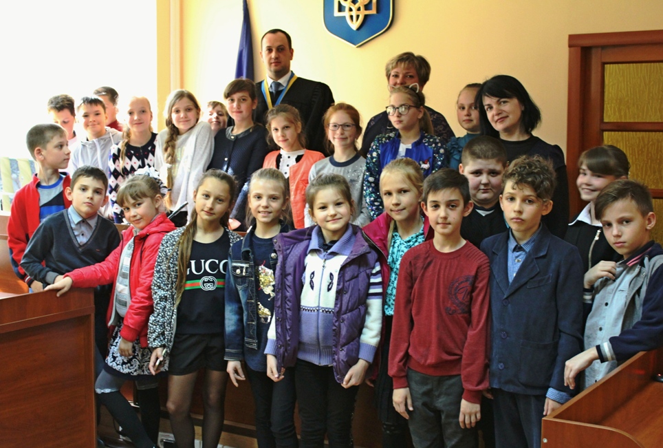 Також у себе в кабінеті школярів гостинно привітав суддя Гуренко Максим. Діти із задоволенням спілкувались з суддєю, задавали безліч цікавих запитань.