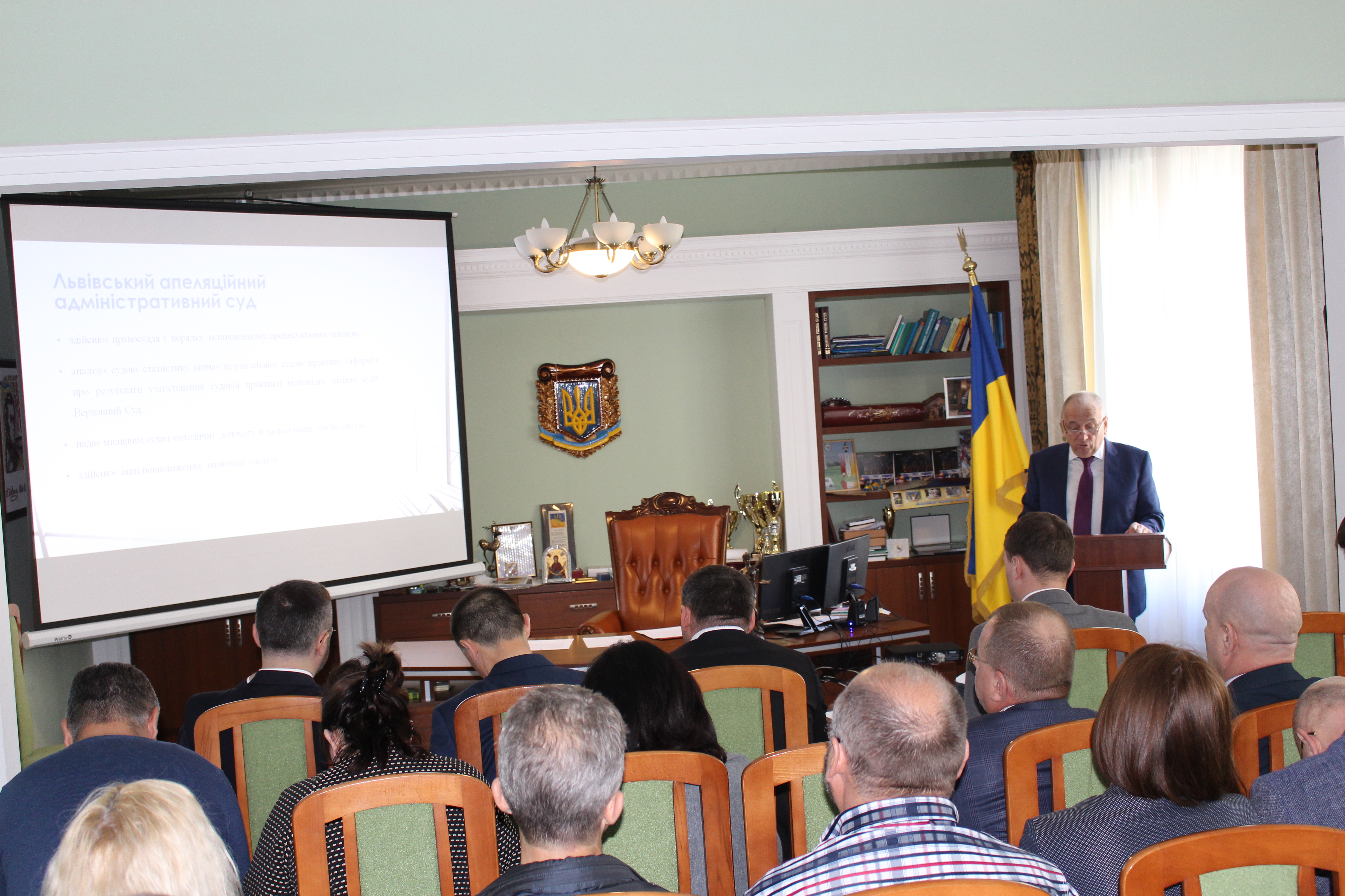 На зборах суддів ЛААС було заслухано інформацію секретарів судових палат Львівського апеляційного адміністративного суду Ігоря Обрізка, Віталія Затолочного, Андрія Рибачука та Михайла Пліша за результатами роботи судових палат Львівського апеляційного адміністративного суду у 2017 році.