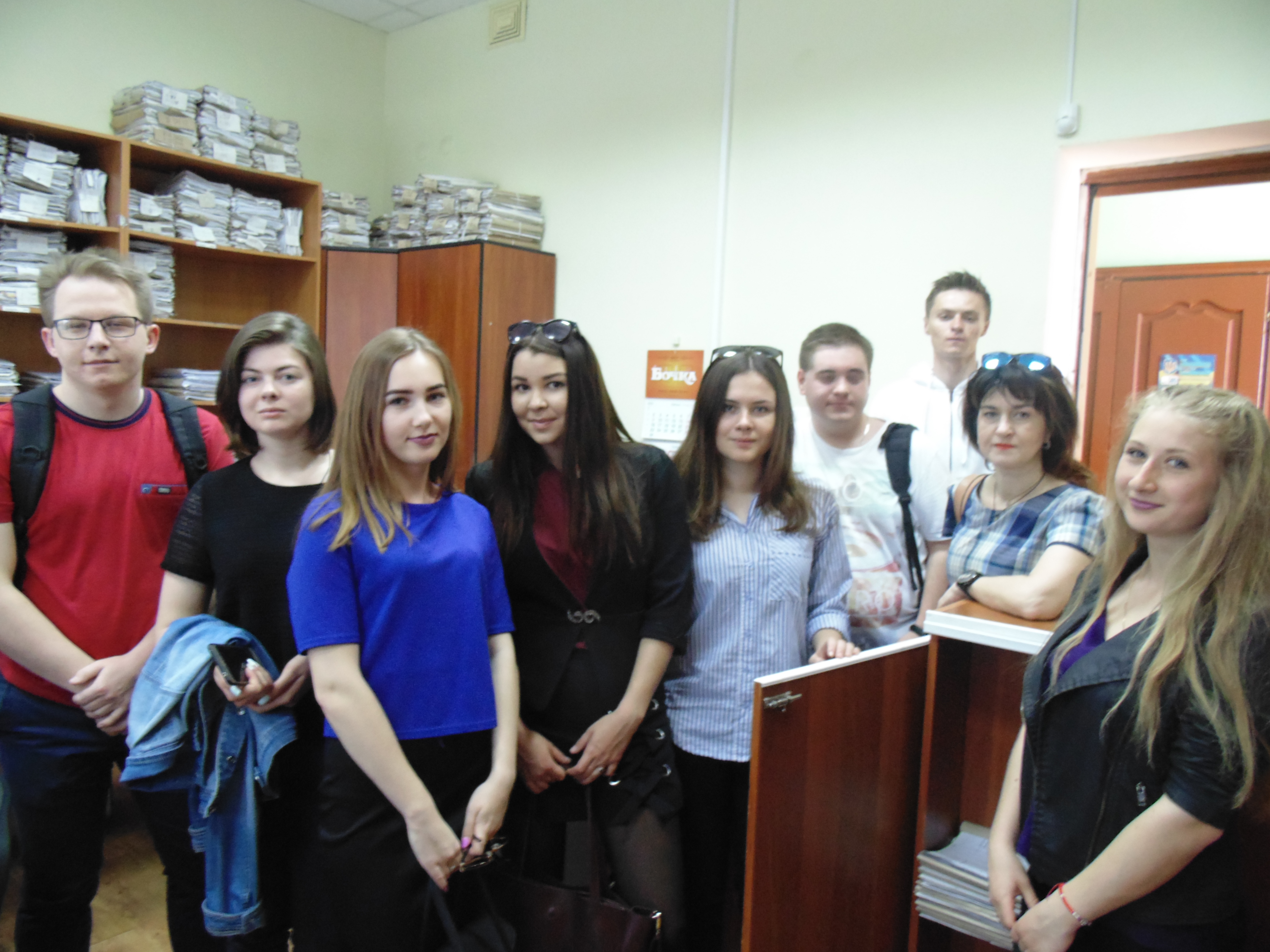 Прес-секретар Наталія Горкуша провела коротеньку екскурсію приміщенням суду. Студенти побували в архіві суду, подивилися як зберігаються справи та отримали відповіді на питання, що їх цікавили: чому так багато справ наразі знаходиться в архіві, яка найдавніша справа, з якого року працює суд, чи можна отримати судове рішення зі справи, що розглянута більше 10 років тому. Побували хлопці та дівчата і в канцелярії з кримінальних справ та канцелярії з цивільних та адміністративних справ. В залі судового засідання разом зі студентами з’ясували де розміщуються прокурори, захисники, обвинувачені, свідки.