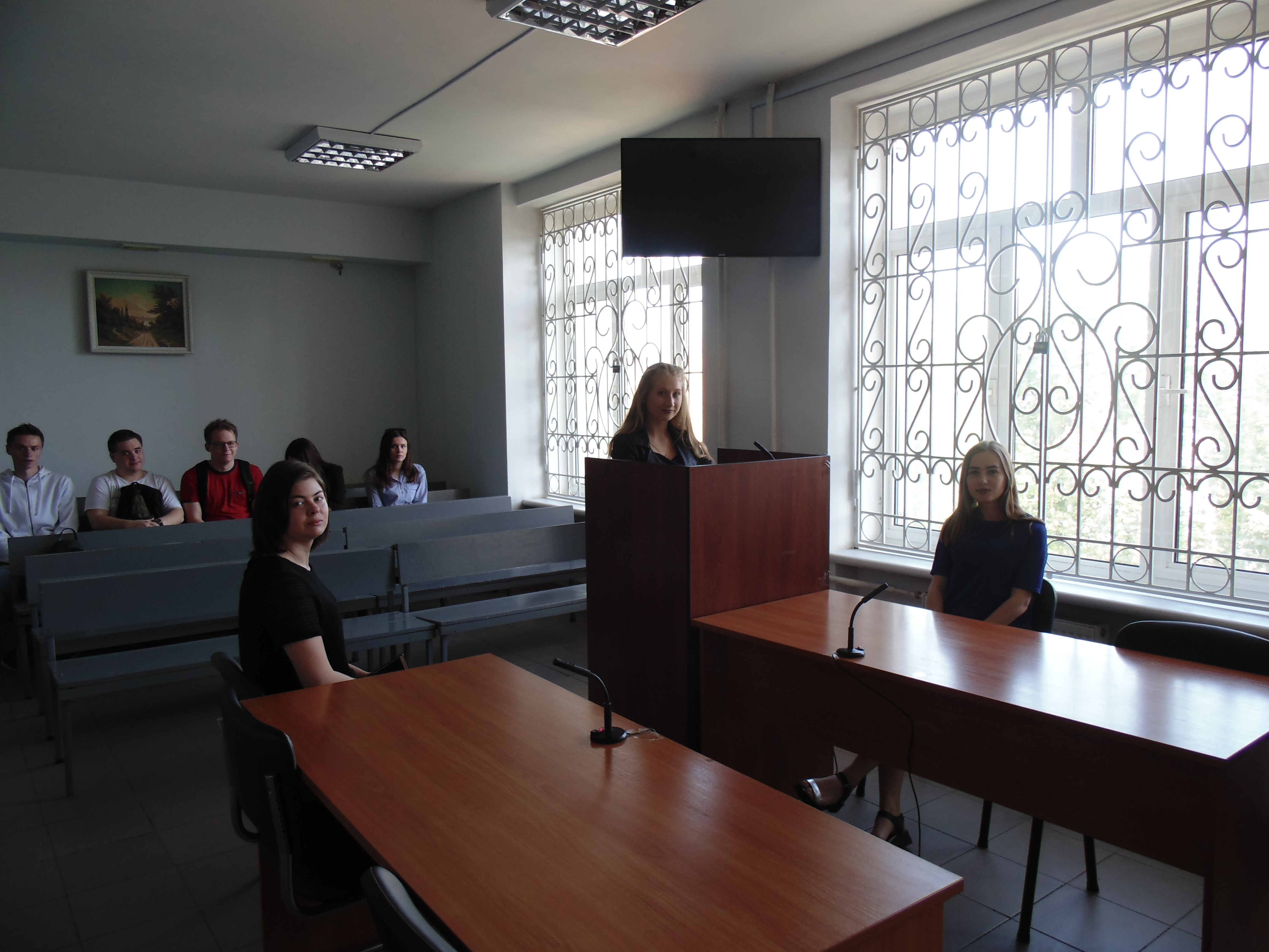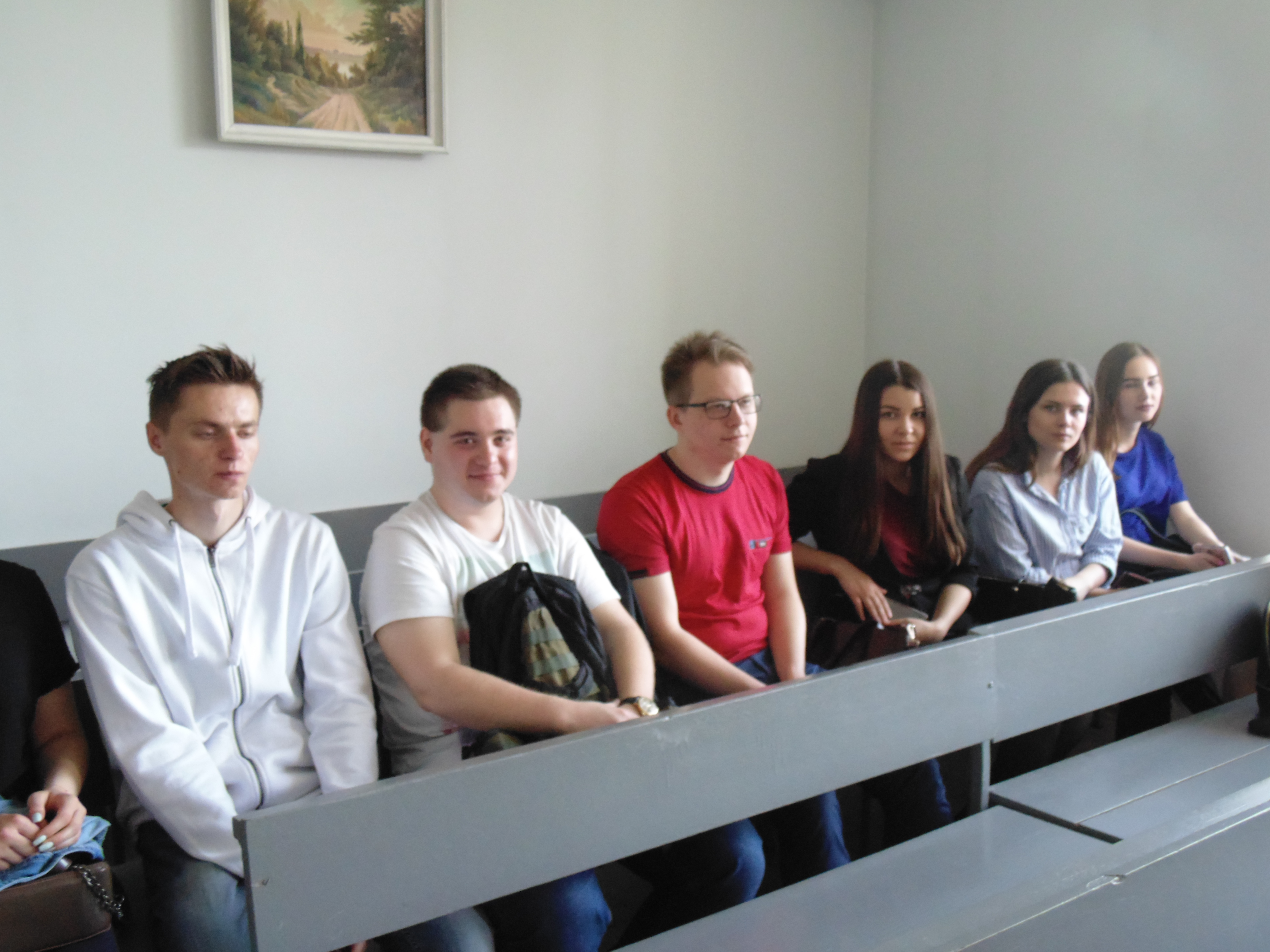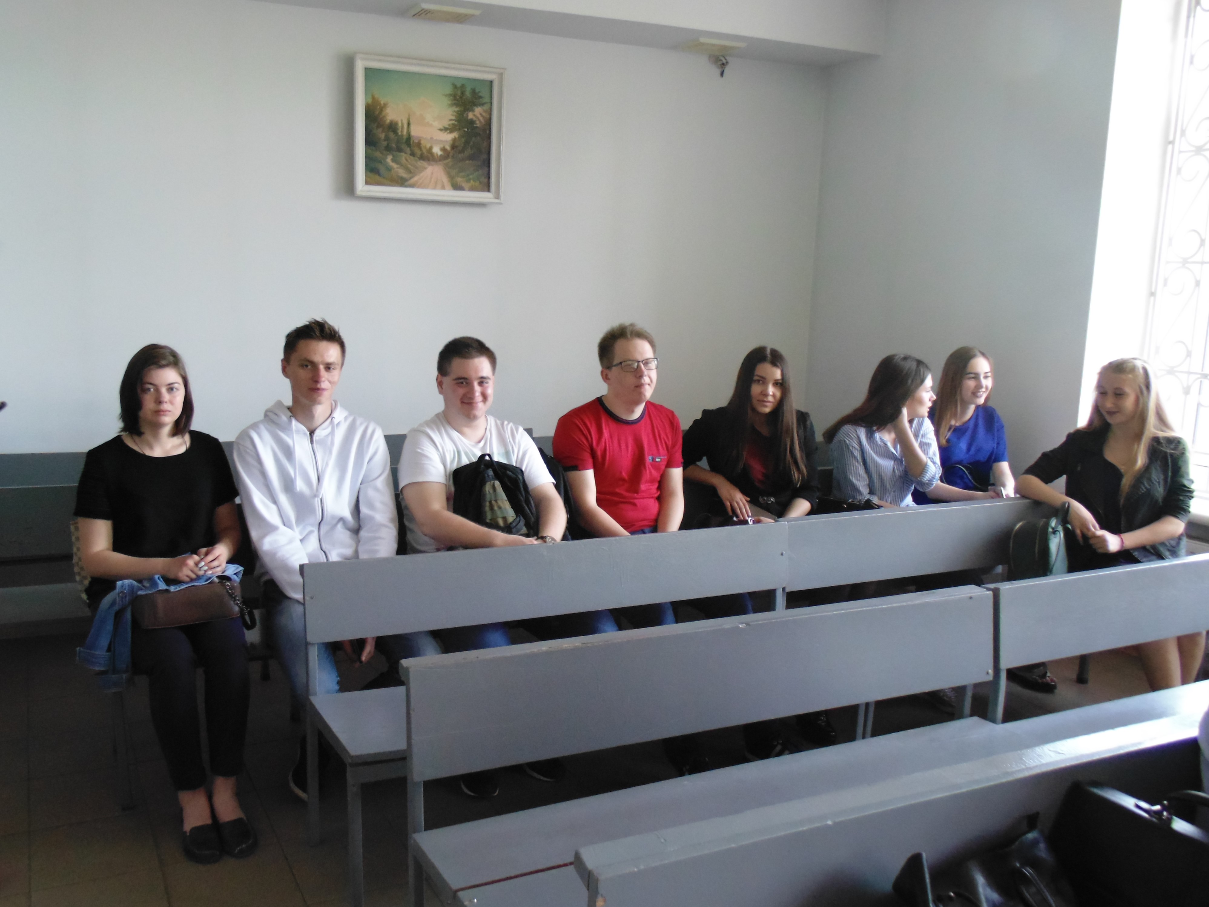 Студенти були присутні у судовому засіданні під час розгляду кримінального провадження відносно громадянина М, який обвинувачується у вчиненні декількох кримінальних правопорушень: заволодіння чужим майном шляхом обману (шахрайство) (ч.1 ст. 190 КК України); підроблення офіційного документу (ч.1 ст. 358 КК України); використання завідомо підробленого документа (ч.4 ст. 358 КК України). Головуючий суддя Клімашевська Ірина Валентинівна.